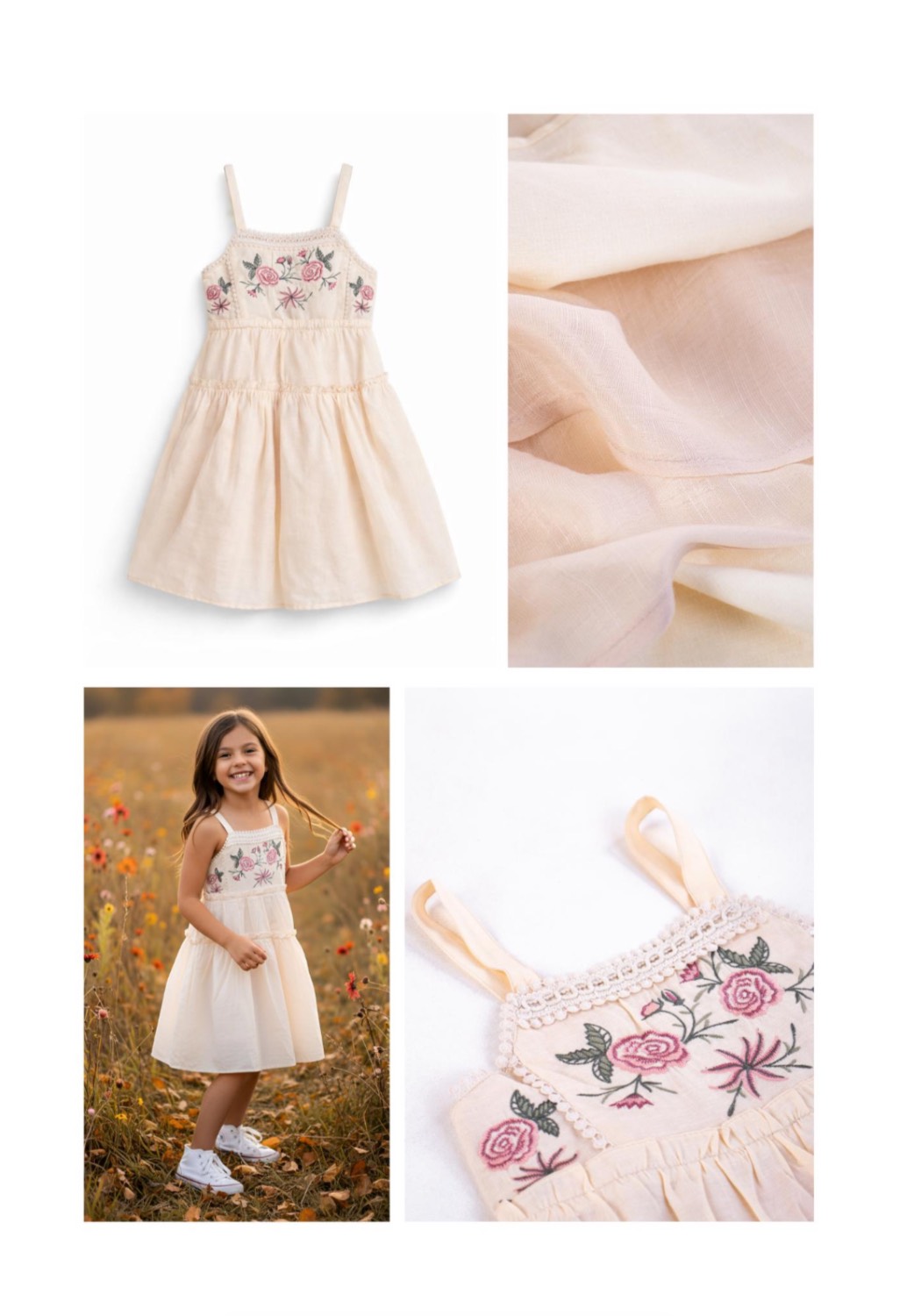 جنس پیراهن لینن نخ لطیف میباشد و رنگ گلدوزی روی لباس ثابت بوده و با شست و شو از بین نمیرود
