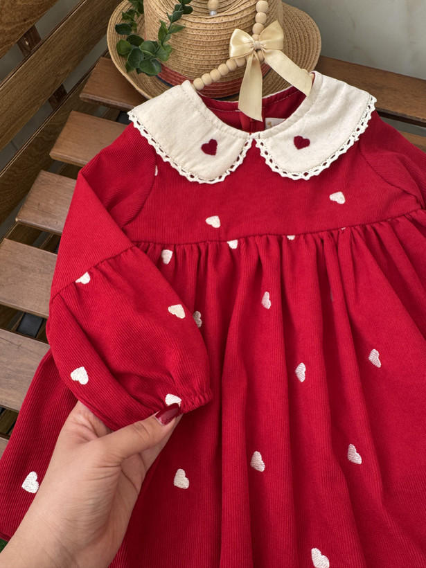 پیراهن مخمل کبریتی طرح قلب