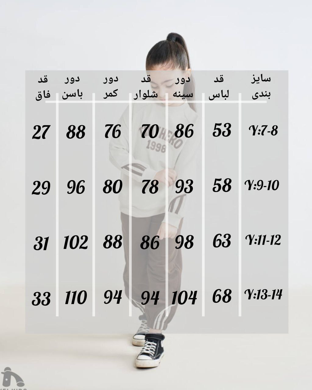 جنس بلوز و شلوار دورس سه نخ میباشد و رنگ و چاپ روی لباس ثابت بوده و با شست و شو از بین نمیرود